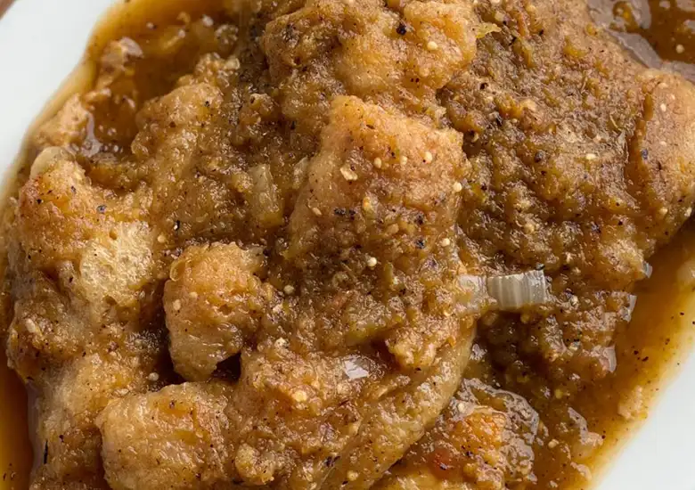 Chicharrones served in a Mildly Spicy Jalapeño/Tomatoe/Tomatillo Salsa (Available Saturday and Sunday)