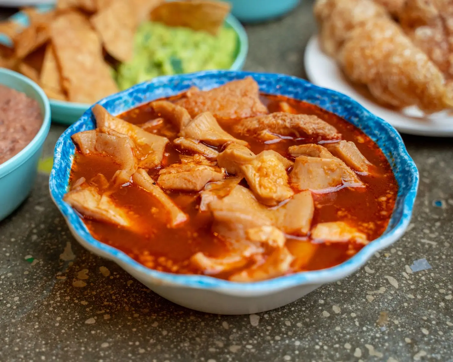 Spicy beef tripe stew served with onion, red pepper, oregano and lim. (Available Saturday and Sunday)