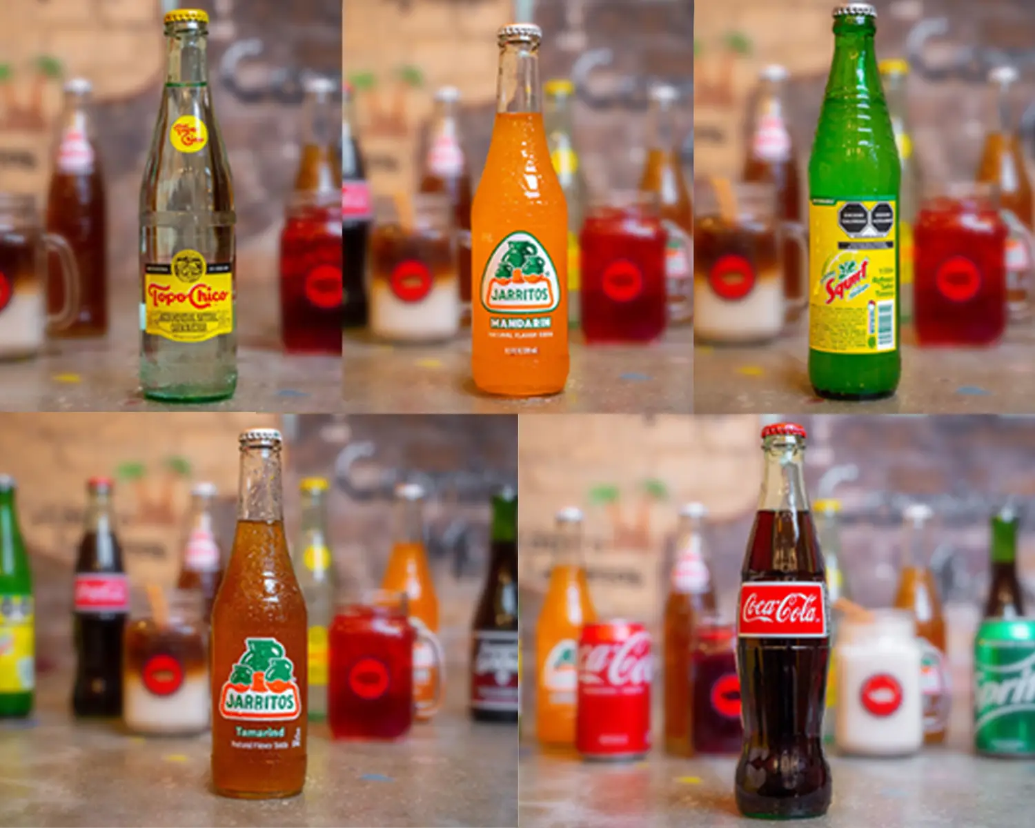 - Bottled Mexican Soft Drinks (Jarritos, Squirt, Sidral Mundet, Topo-Chico, and Sangria Señorial).